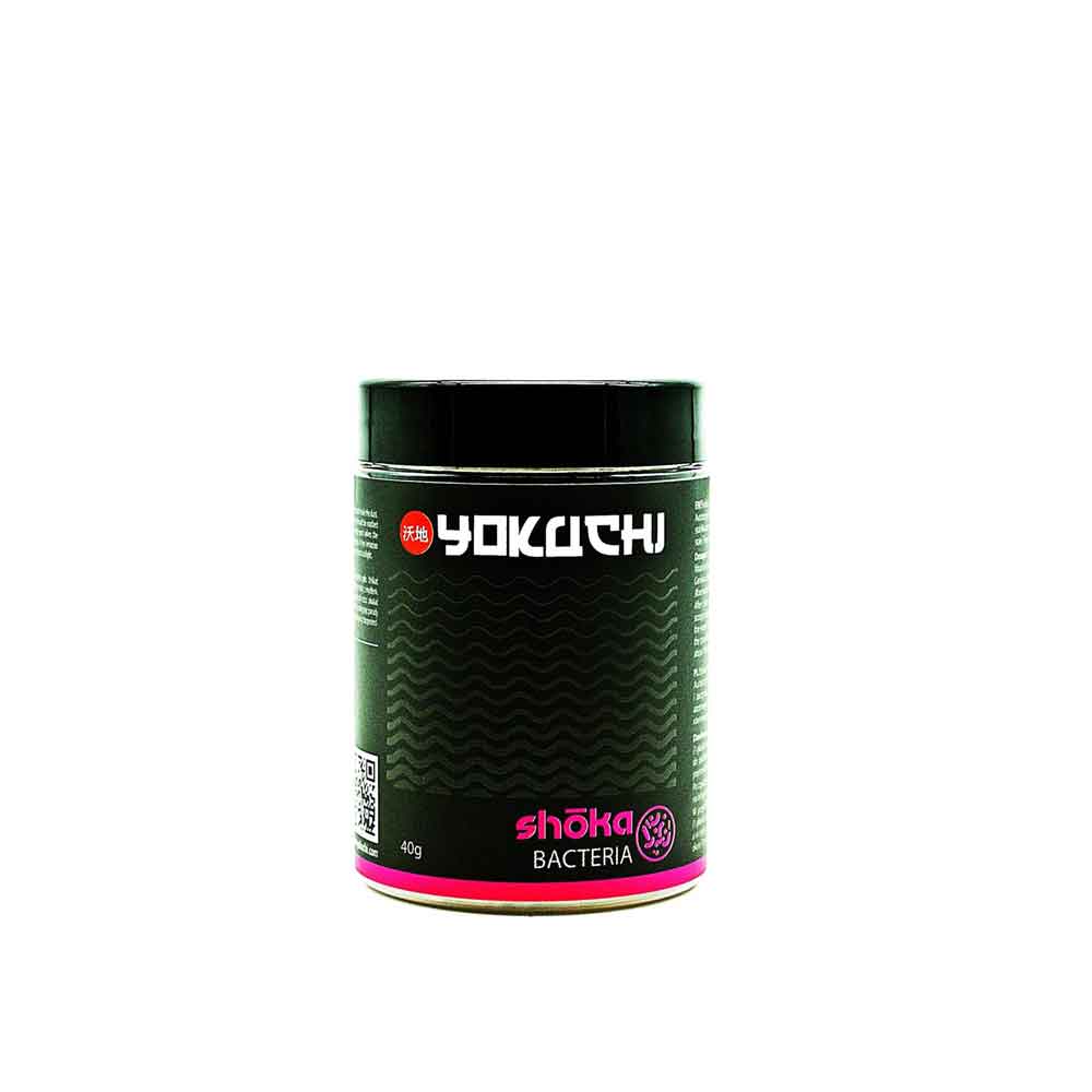 Yokuchi Shōka Bacteria: Ativador biológico com 5 biliões de bactérias/g. Acelera o ciclo do azoto, elimina amónia e combate cianobactérias. Uso em filtro e solo.